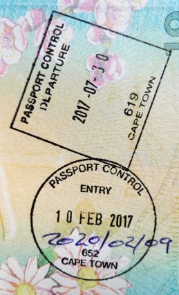 (Handwritten on visa) “Admitted to take up study at the University of Cape Town.”